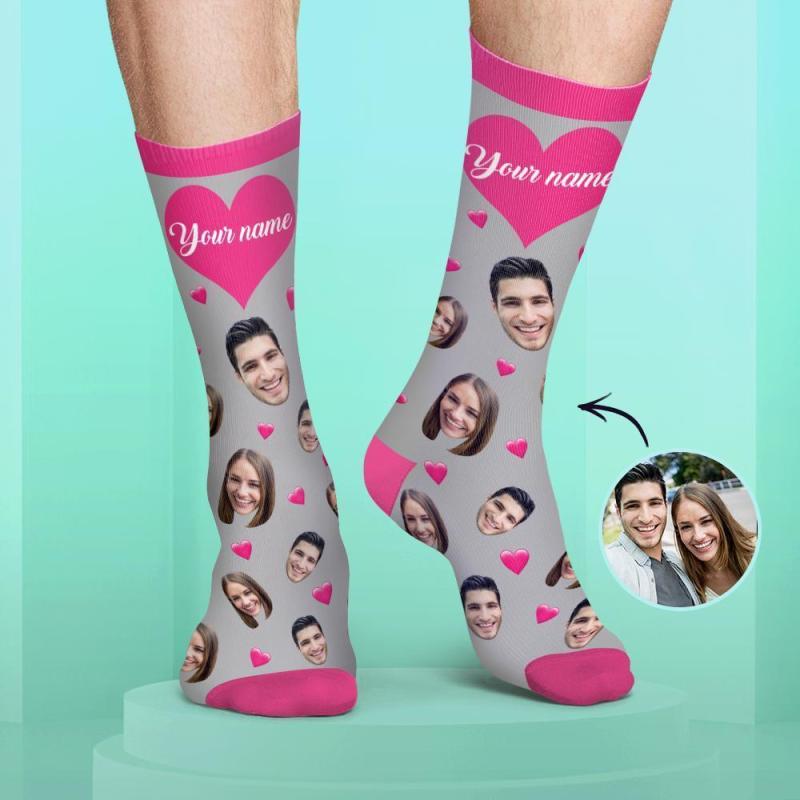 Custom Couple Face and Name Candy Colors Socks