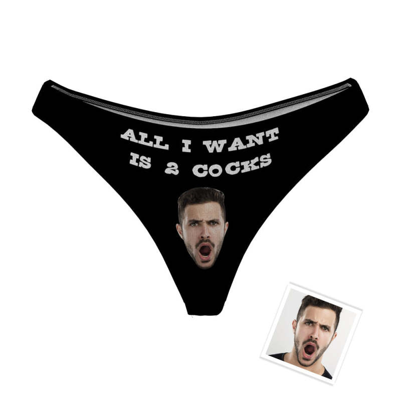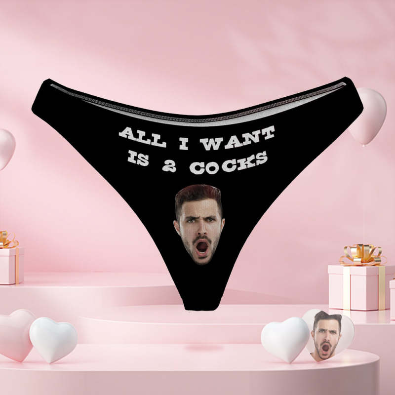 All I Want Is Two Cocks Women's Custom Face Thong Sexy Naughty Panty Gift for Her