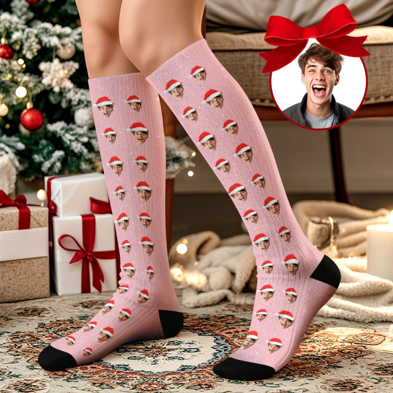 Christmas Gifts Custom Face Knee High Socks Personalized Xmas Socks Merry Christmas Heart Full Face