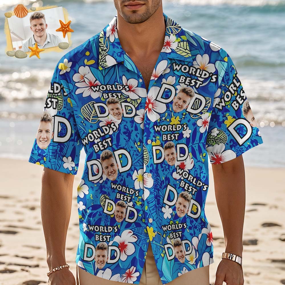 Custom Best World Dad Face Hawaiian Shirt Blue and Flower Tropical Hawaiian Shirt Fathers Day Gift