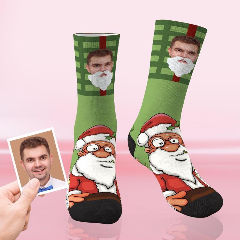 Custom Christmas Socks Personalised Face Funny Socks - Santa Claus