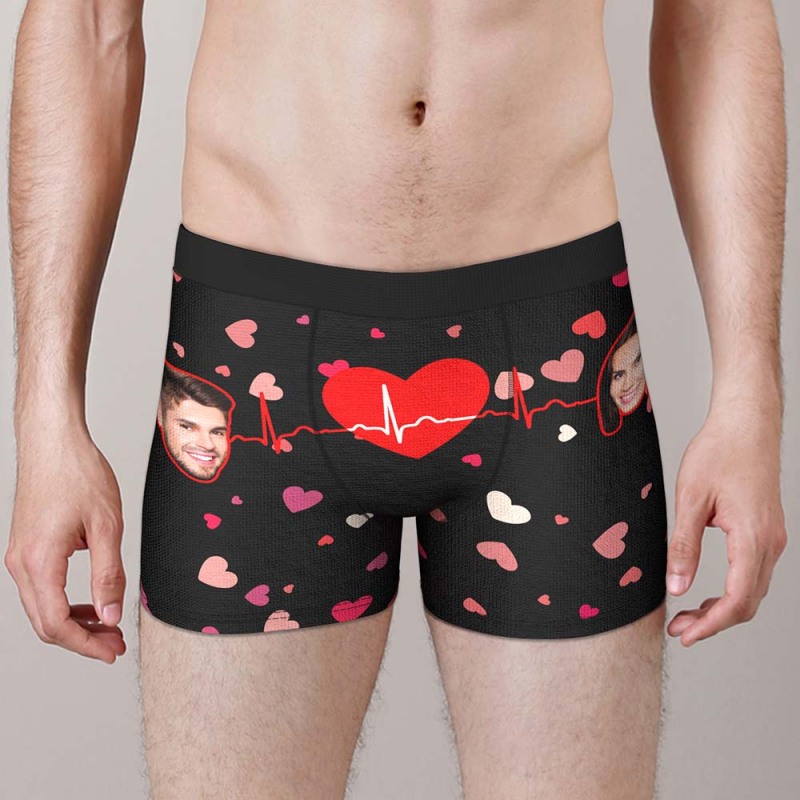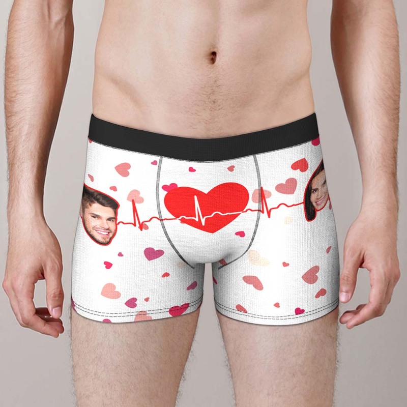 Custom Face Boxer with Couple's Picture Personalised Love Telepathy Symbol Men's Shorts Christmas Gift