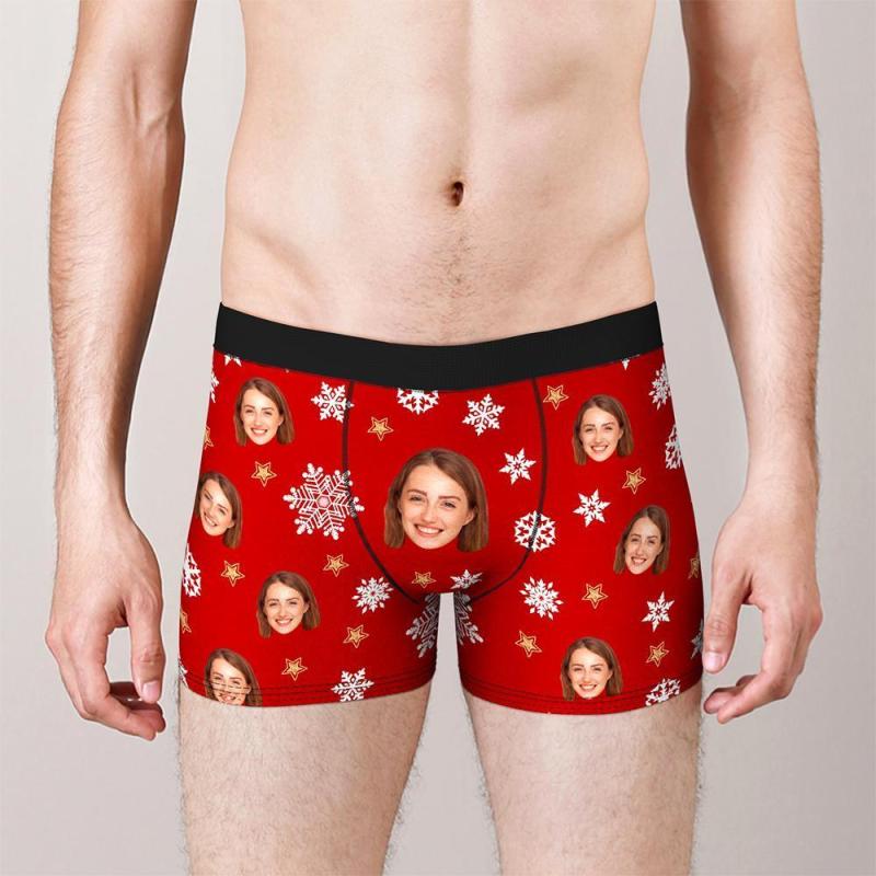 Custom Face Boxers Shorts Christmas Snowflakes Personalised Photo Underwear Christmas Gift for Men