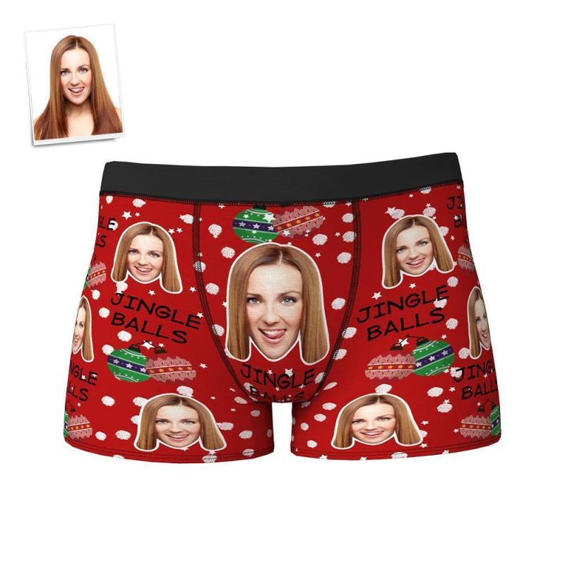 Custom Face Boxers Shorts Personalised Photo Underwear JINGLE BALLS Christmas Gift for Him