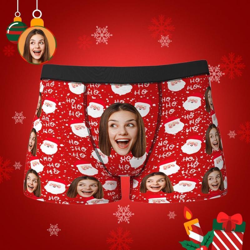 Custom Face Boxers Shorts Santa Claus Personalised Photo Underwear Christmas Gift for Men