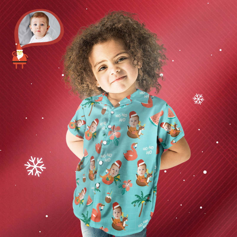 Custom Face Christmas Pool Party Hawaiian Shirt Kid's Personalised Christmas Gift