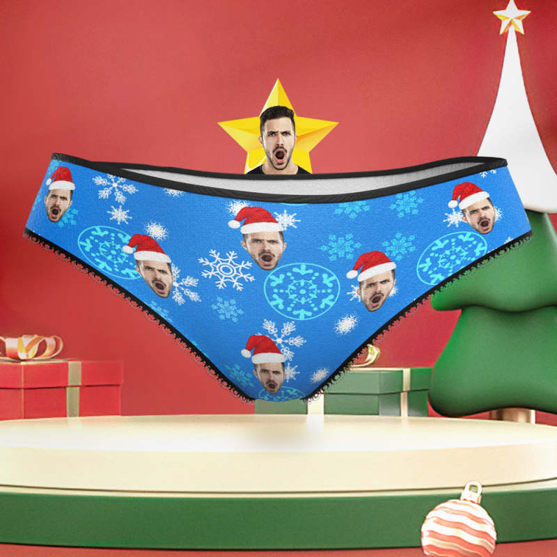 Custom Face Christmas Snowflake Underwear Funny Christmas Panties Gift for Her