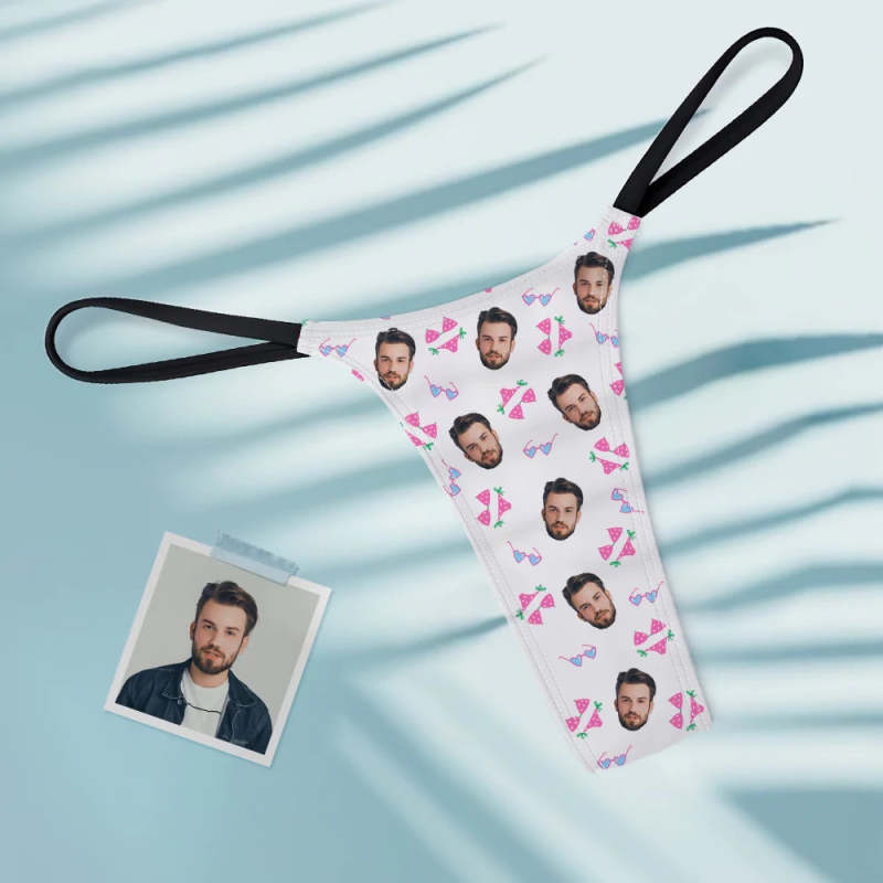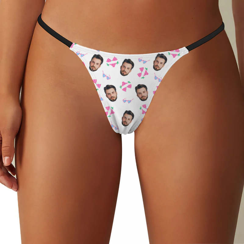 Custom Face Cute Bikini Pattern Women's Tanga Thong Gift for Her