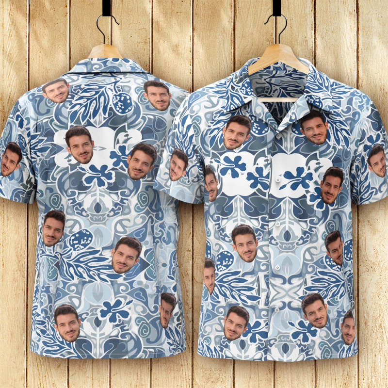Custom Face Hawaiian Shirt Men's All Over Print Aloha Shirt Gift - Blue Vintage Pattern Custom Face Hawaiian Shirt Men's All Over Print Aloha Shirt Gift - Blue Vintage Pattern Custom Face Hawaiian Shirt Men's All Over Print Aloha Shirt Gift - Blue Vintage Pattern