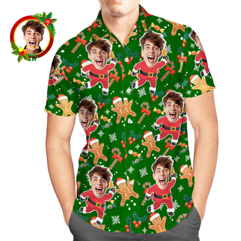 Custom Face Hawaiian Shirt Santa Gingerbread Man Men's Christmas Shirts - MyFaceUnderwearAU Custom Face Hawaiian Shirt Santa Gingerbread Man Men's Christmas Shirts - MyFaceUnderwearAU