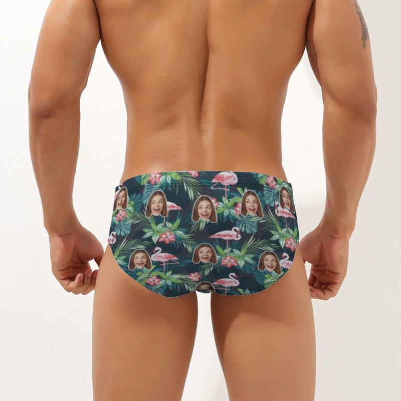 Custom Face Hawaiian Style Men's Swimming Trunks Personalised Flamingo Triangle Swim Briefs
