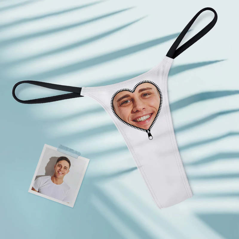 Custom Face Heart-shaped Zipper Women's Tanga Thong Gift for Her