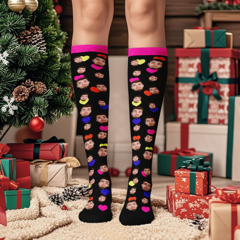 Christmas Gifts Custom Face Knee High Socks Personalized Socks Merry Christmas