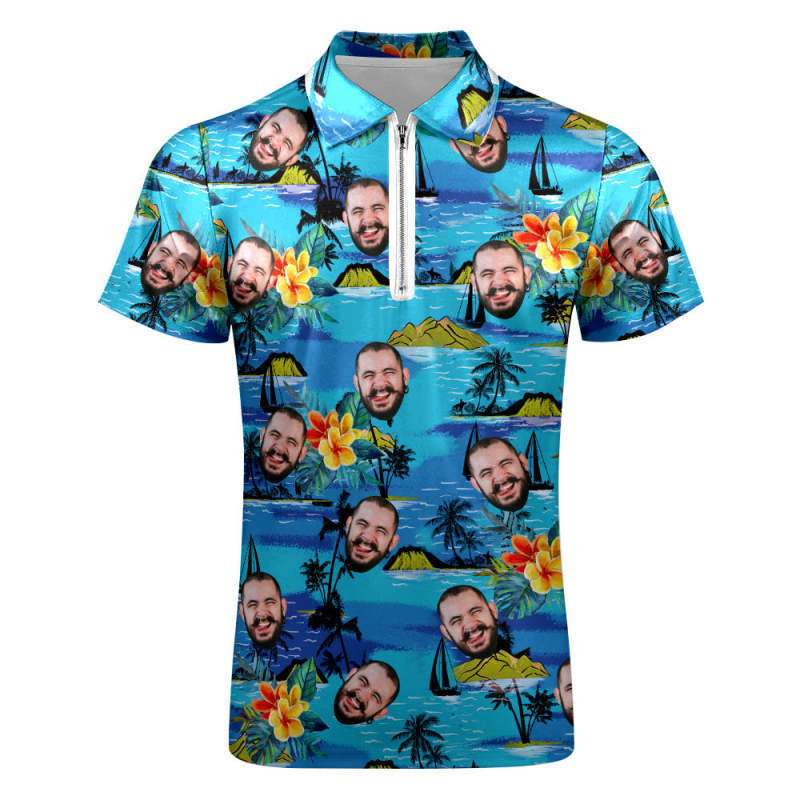 Custom Face Men's Polo Shirt with Zipper Funny Polo Shirt for Boyfriend or Husband