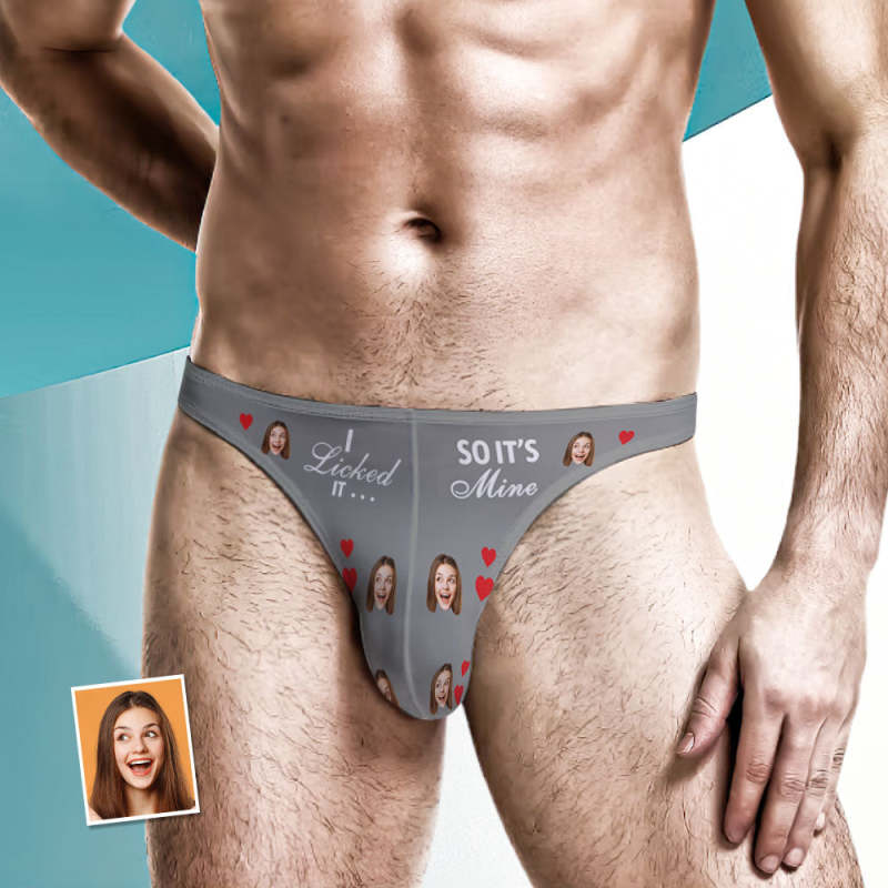Custom Face Men's Thong - I Licked so it's Mine Men's Briefs