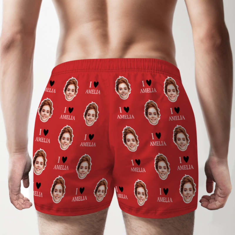 Custom Face Multicolor Boxer Shorts I Love You Personalized Photo Underwear Gift for Him
