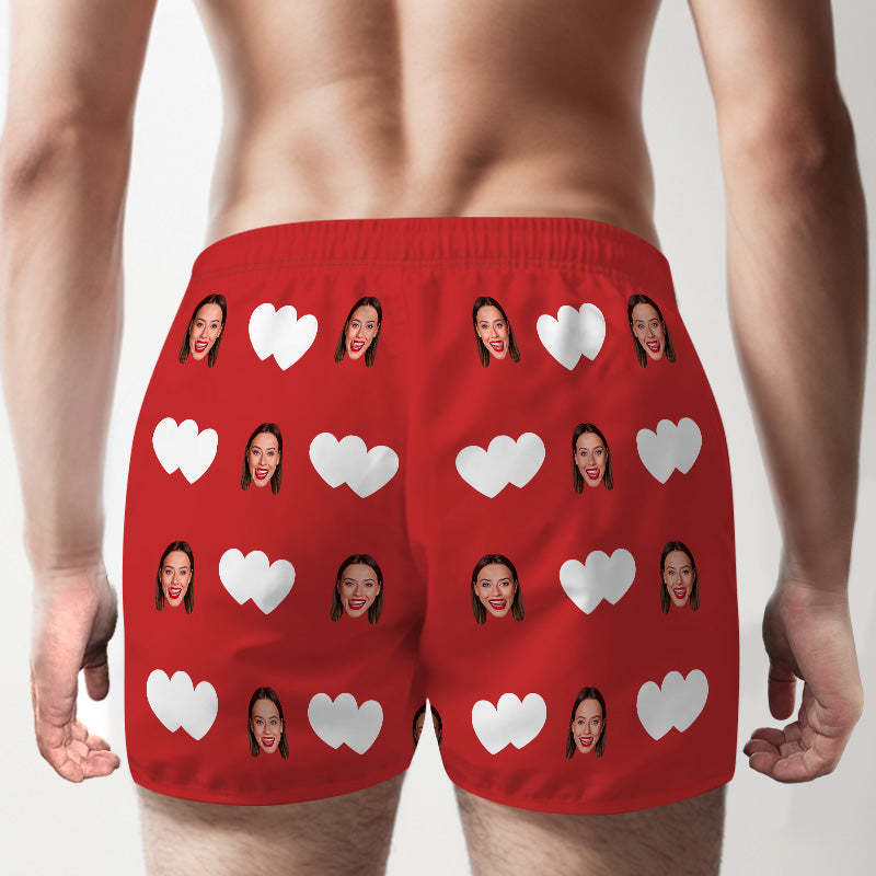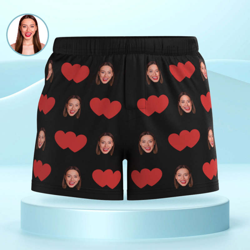 Custom Face Multicolor Boxer Shorts Red Heart Personalized Photo Underwear Gift for Him
