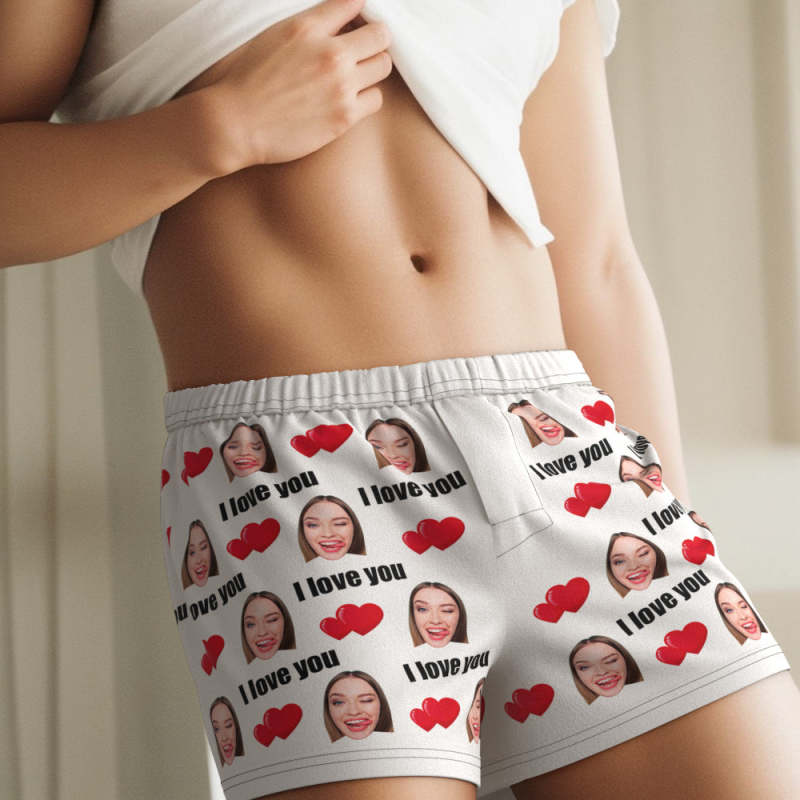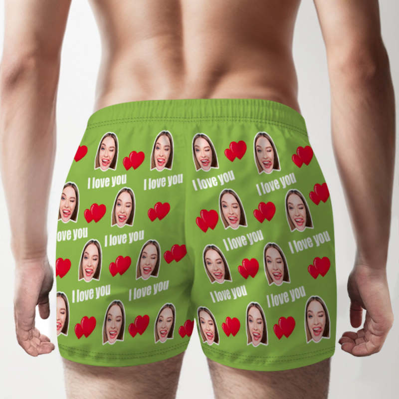 Custom Face Multicolor I Love You Boxer Shorts Personalized Photo Underwear Gift for Him