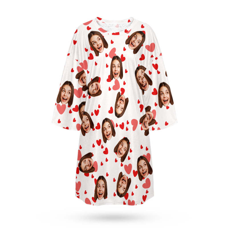 Custom Face Nightdress Personalised Photo Women's Oversized Nightshirt Red Heart Gifts For Her