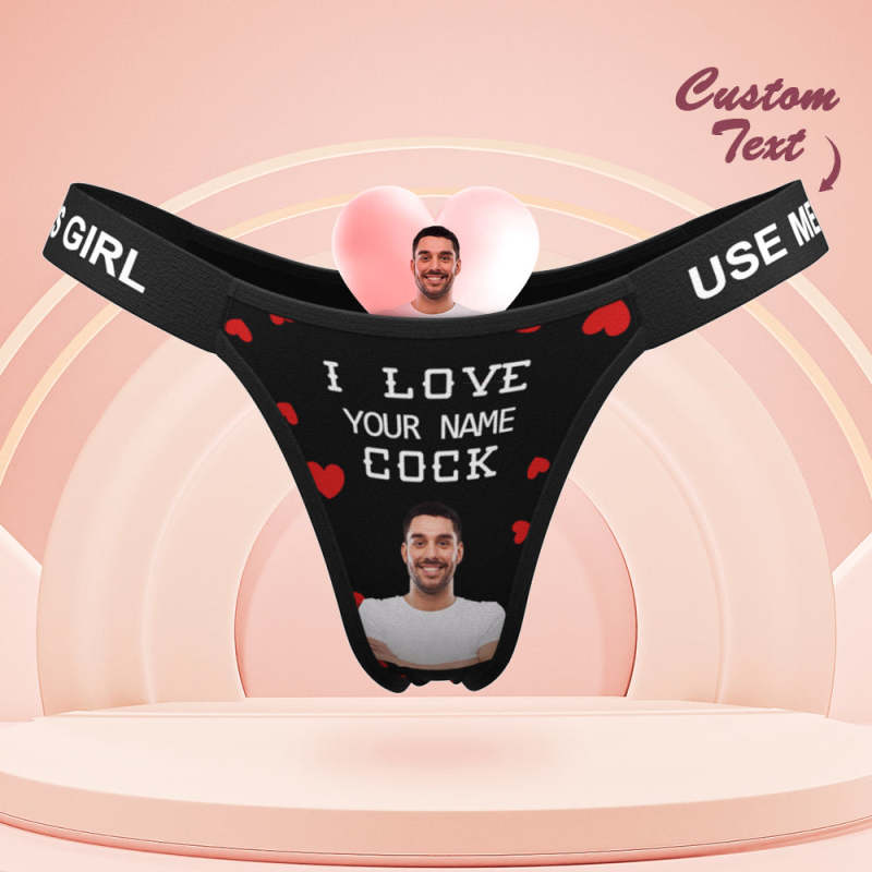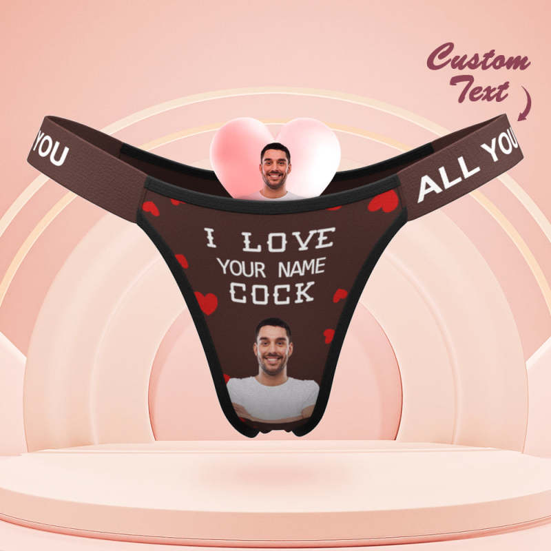 Custom Face Panties Love Your Cock Personalized Waistband Engraved Thong Gift for Her