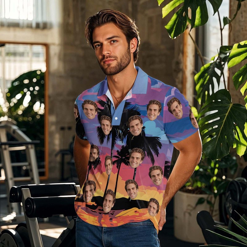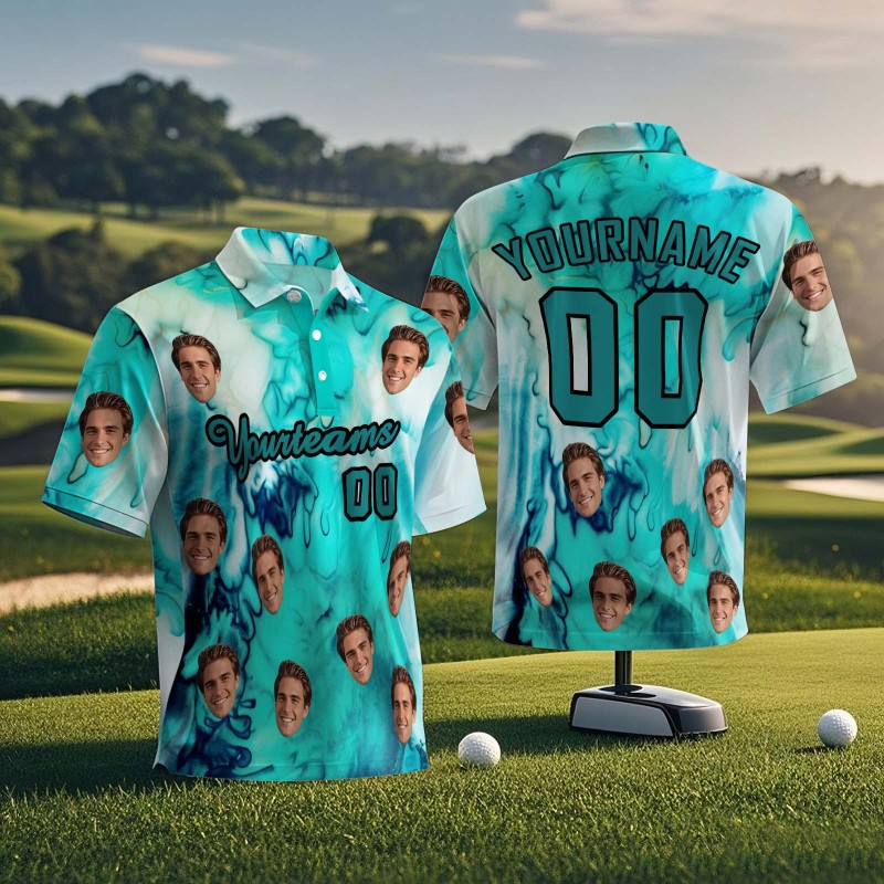 Custom Face Polo Teal White Hawaii Palm Trees Performance Golf Polo Shirt Gift