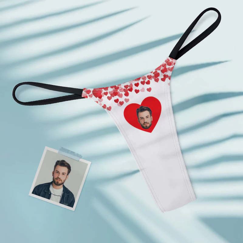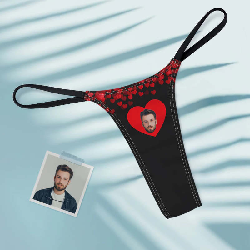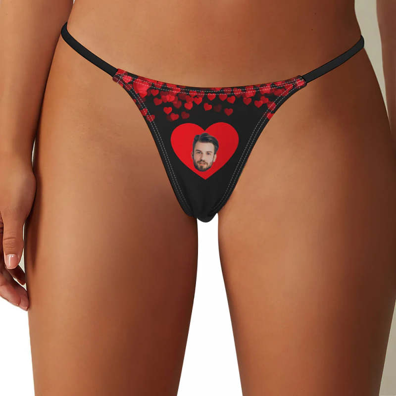 Custom Face Red Heart Sexy Women's Tanga Thong Valentine's Day Gift for Her
