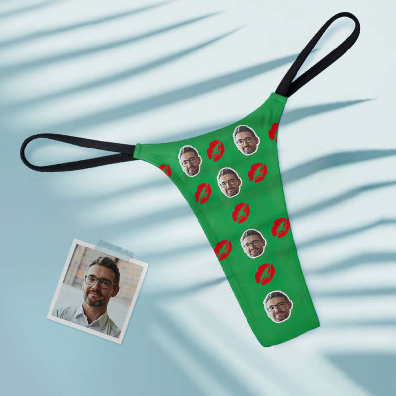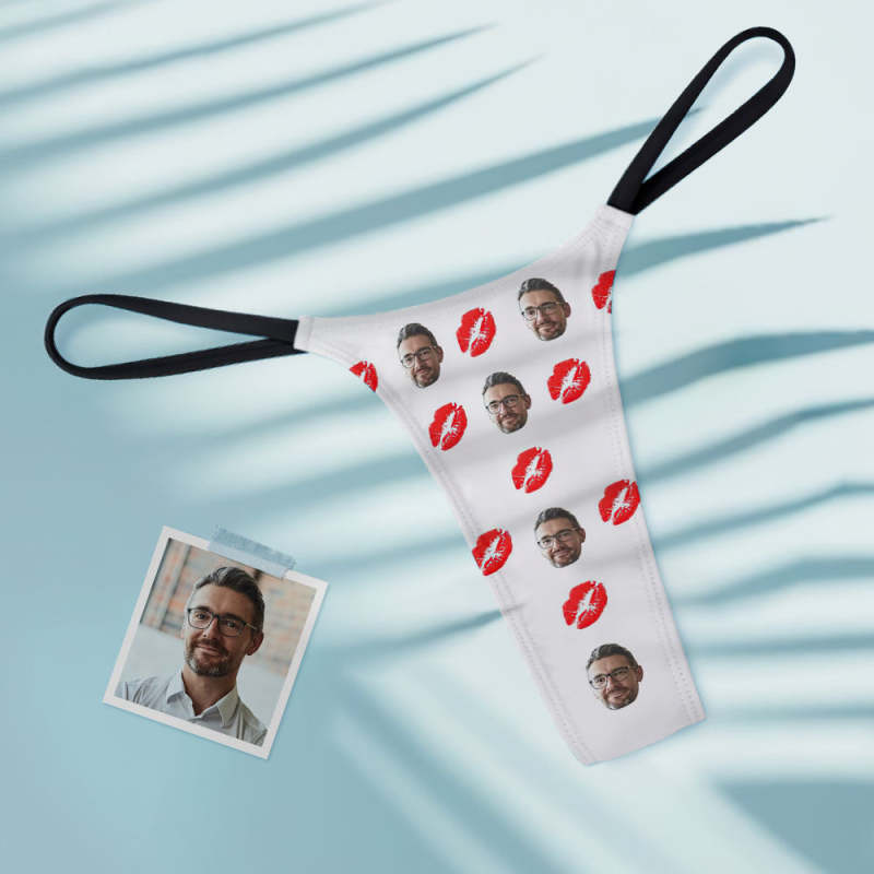 Custom Face Red Lips Women's Tanga Thong Kiss