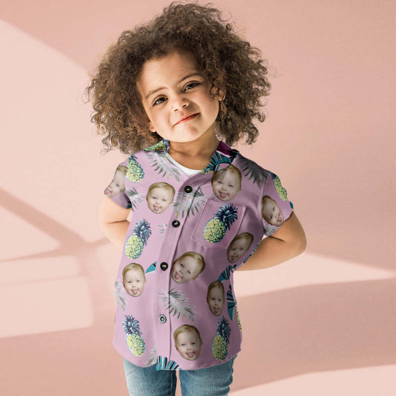 Custom Face Shirt Kid's Cute Pineapple Personalised Hawaiian Shirt