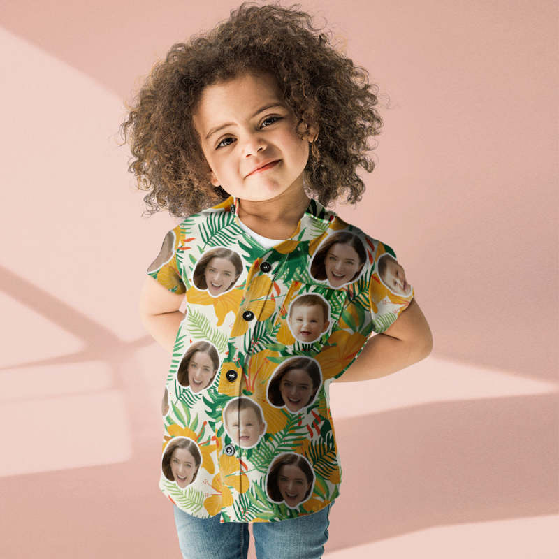 Custom Face Shirt Women's and Kids Hawaiian Shirts Short Sleeve Shirt Mother's Day Gift Yellow Flowers