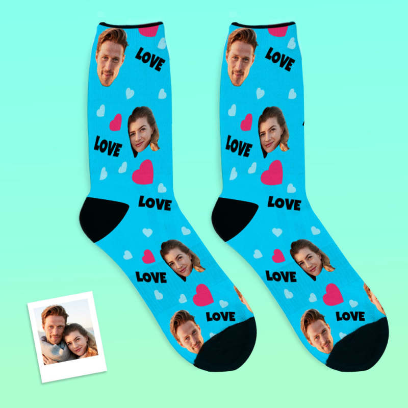 Custom Face Socks Personalised Photo Socks Gift For Family - Love