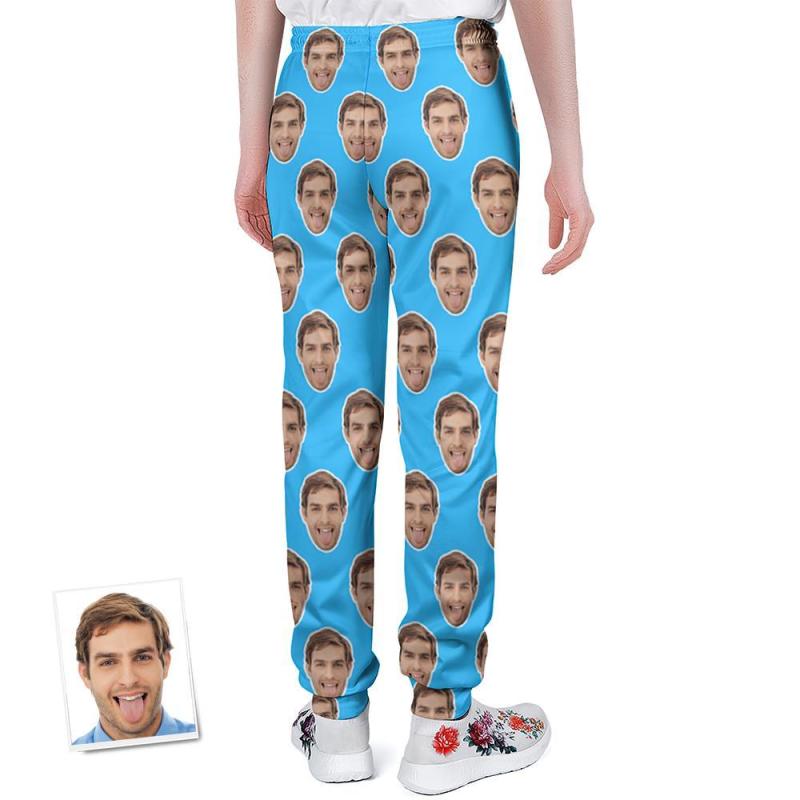 Custom Face Sweatpants Personalised Blue Unisex Joggers - Gift for Lover