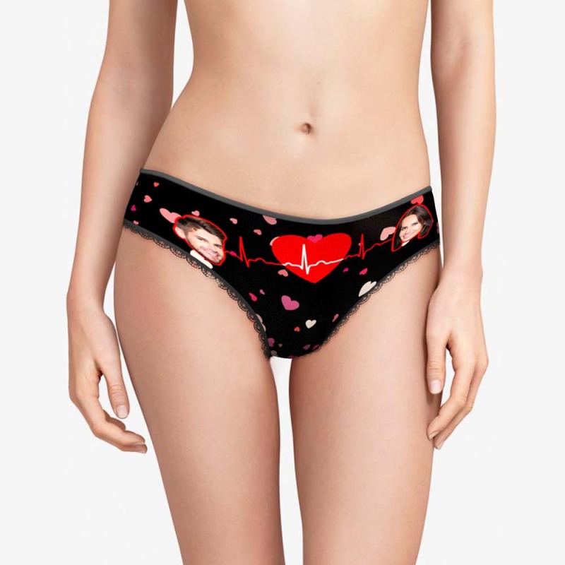 Custom Face Underwear with Couple's Picture Personalised Love Telepathy Symbol Women's Shorts Christmas Gift