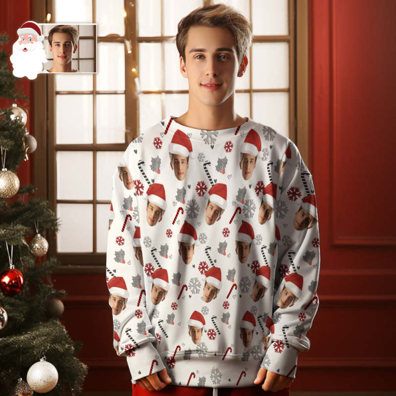 Custom Face Unisex Sweatshirt Casual Hoodie Printed Funny Crewneck Shirt Christmas Day Gift