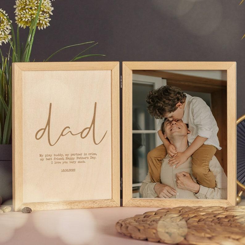 Custom Father's Day Picture Frame - Unique Gifts for Dad, Grandpa, Husband | Christmas, First Father's Day, Photo Frame, Wooden Keepsake Box