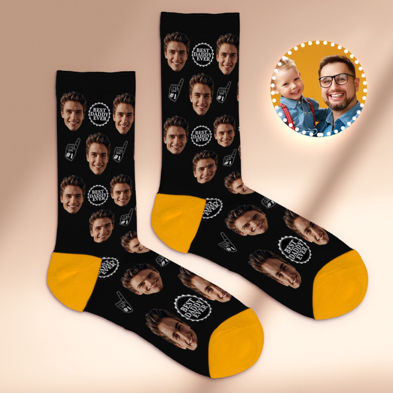 Custom Full Face Photo Print Socks Colorful Best Dad Ever Socks Personalized Custom Design Best Gift Idea For Father