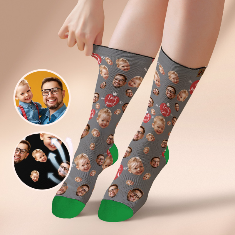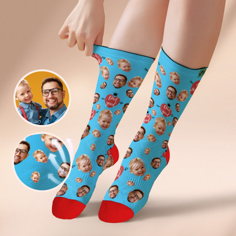 Custom Full Face Photo Print Socks Love Dad Good Color Crown Dad Socks Personalized Custom Design Best Fathers Day Gift