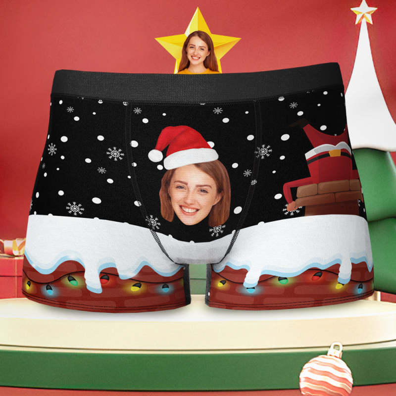 Custom Girlfriend Face Funny Boxer Briefs Christmas Gift for Him