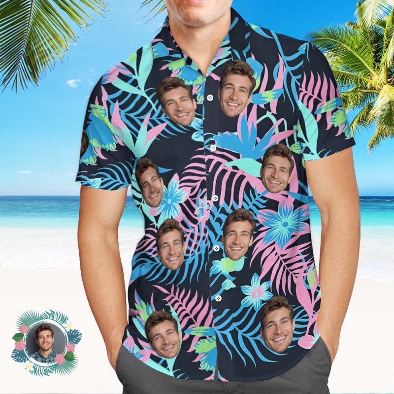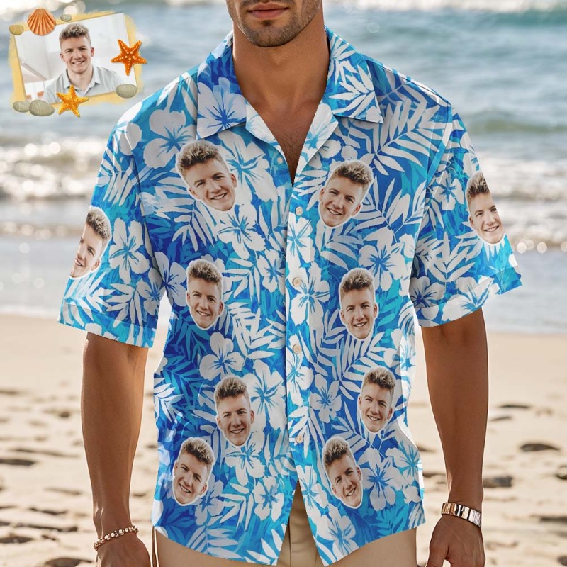 Custom Hawaiian Shirts Personalized Tropical Blue Cute Little Dinosaur Hawaiian Shirts Beach Vacation Gifts