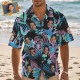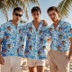 This Hawaiian shirt features print,button up closure,short sleeve.