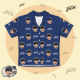• Matching shirt with notched lapels; button front.