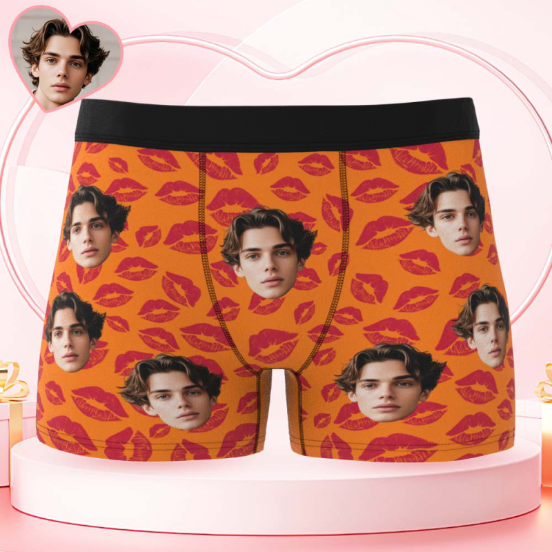 Custom Mens Kisses All Over Boxer Personalized Belt Color Face Boxers Valentines Day Underwear