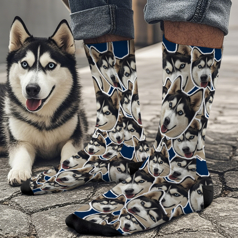 Custom Mush Face Socks Funny Photos Sock Gift for Pet Lover Smoky Blue