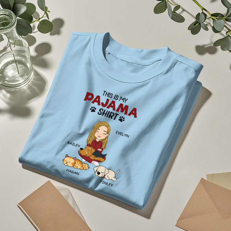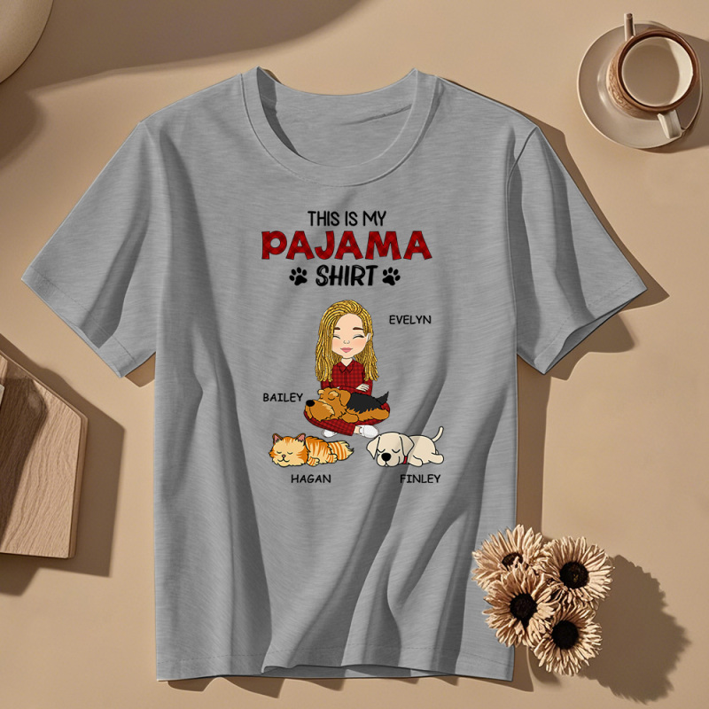 Custom Name Cartoon Sleeping Pet T-shirt Personalized Unisex T-Shirt Mothers Day Gift T-Shirt