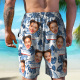 Custom Photo Cruise Ship Beach Shorts Gift For Traveling Lovers Personalized Blue Leaves Face Beach Shorts