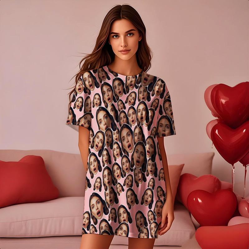Custom Photo Face Nightdress Personalized Women's Oversized Pink Nightshirt Face Mash Nightdress