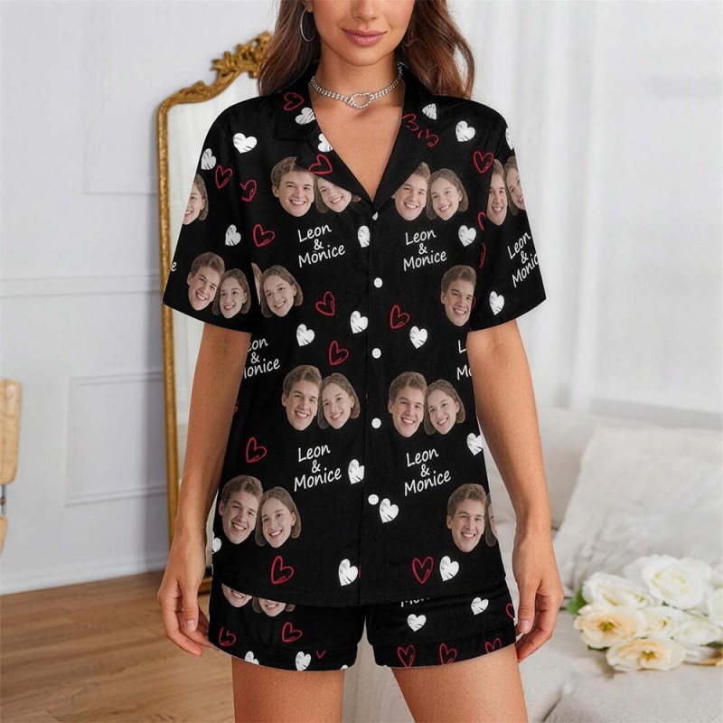 Custom Short Pajamas with Face and Name,Customized Pajama Set For Men/Women,Personalised Short Sleeve Family Pajama Set,Birthday/Party Gifts