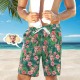 Men's Custom Face Beach Trunks All Over Print Photo Shorts - Green Leaves And Flowers