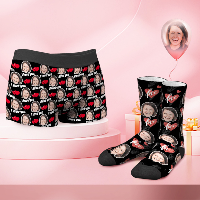 Men's Custom Face Boxer Shorts and Face Socks Set | I Love You