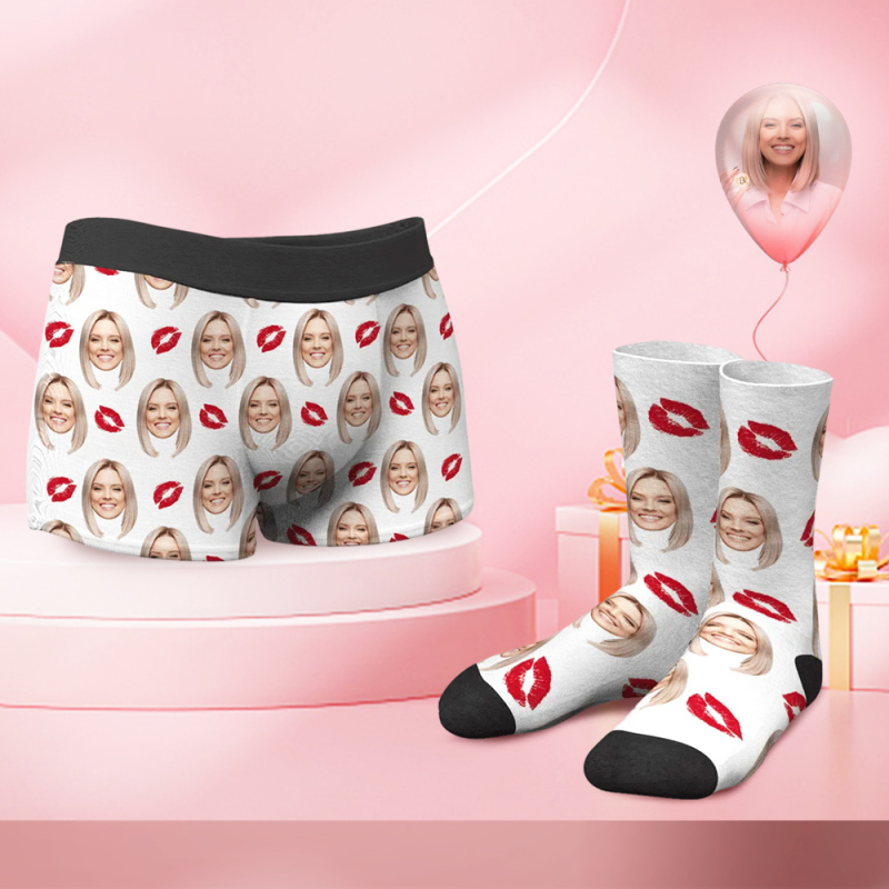 Men's Custom Face Boxer Shorts and Photo Socks Set | Kiss