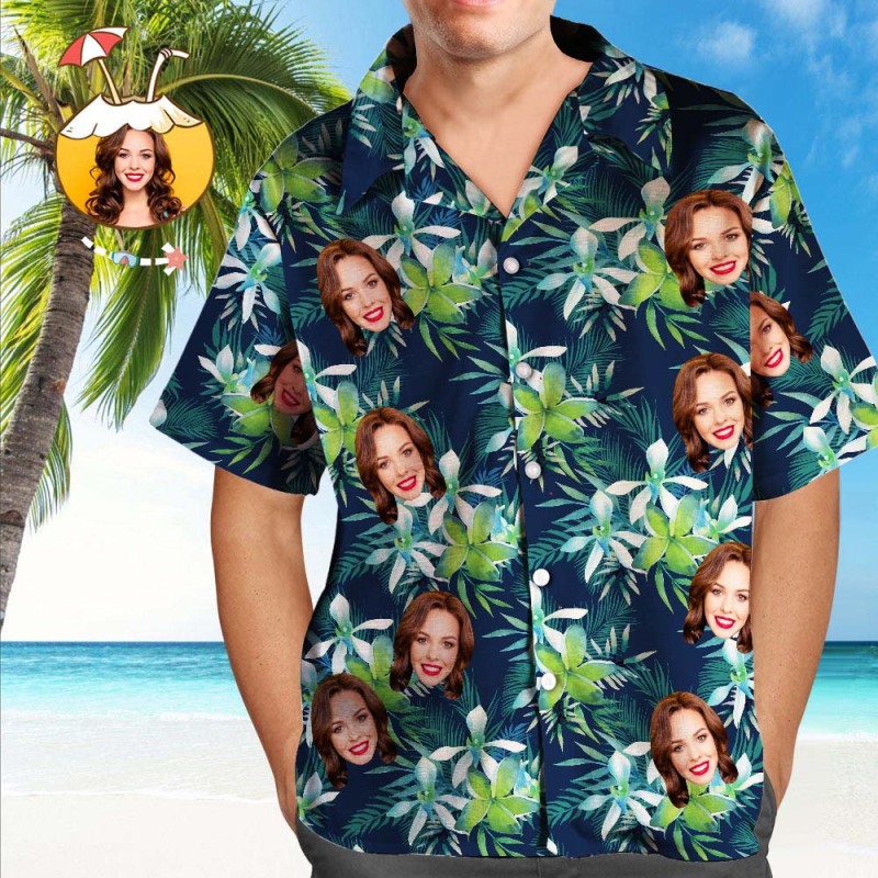 Men's Custom Face Shirt Hawaiian Shirt Short Sleeve Flower